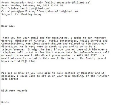 November 2018Former Fijian Ambassador to the Middle East Robin Nair, reveals two dirty deals by Fiji’s corrupt AG and Minister of Economy Aiyaz Sayed-Khaiyum: